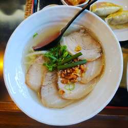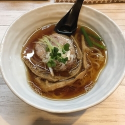 18/9/3訪問。過去分ですが、閉店しているので、足跡を残させていただきます。ラーメン(650円)を。スープは、動物系主体のじんわり系。麺は、厚さ・幅が不揃いのビロビロ手打ち。この不均一感は、手揉み感があって好きかも。具は、長ネギ・かいわれ・ニンニクの芽・メンマ・チャーシュー。こういう清湯にニンニクの芽は珍しい。丼が奇しくも先ほど伺った【舌笑家】と同じような、アシンメトリーなや... 続きを見る
