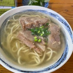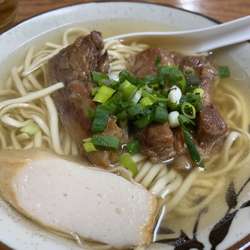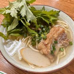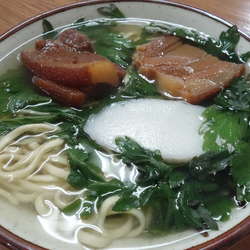 ちょいカタの麺に熱々スープ、しっかりした三枚肉、島ネギとかまぼこ、これ以上でこれ以下でもない、ど真ん中トラディショナル沖縄そば。後半は辛みと深みが際立つコーレーグースを数滴、美味い。