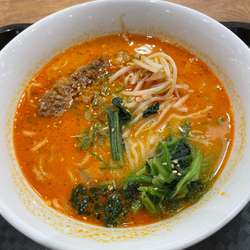 ゴマの風味もしっかり香る辛さ控えめのスープ。うまい。