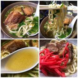 | メニュー | アーサ(あおのり)そば500円、アーサそば軟骨ソーキのせ600円、野菜そば700円、スペシャル野菜そばソーキ入り850円、軟骨ソーキそば700円、沖縄そば700円、てびちそば750円、豚三味そば800円 ほか焼きそば・沖縄料理 |