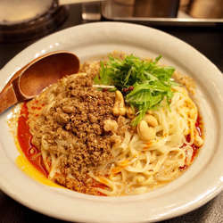 よくかき混ぜて一口、痺れはそこそこ強く辛さはピリ辛程度。モチモチとした中太麺にニンニクとタレがよく絡んで美味しい。ナッツも豊... 続きを見る