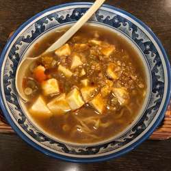 サイコロ状豆腐がゴロゴロ入ったビジュアルの一杯。まーぼー餡の無い部分はあっさりすっきりした穏やかな醤油スープ。まーぼー餡はこれまた穏やかなピリ辛なものでヘタレでも難なく頂けるだろう。合わさるは加水高めの汎用性のある中細中華麺。麺の特性からか、束になってかかって来るのでトロみあるスープとの親和性がすこぶる... 続きを見る