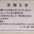「味リニューアル及び研究の為9月20日をもちまして一時休業とさせていただきます。