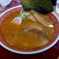 濃厚な味噌スープのラーメンにチャーシュー1枚に焼き海苔・ナルト・ねぎ・メンマをトッピング。パチンコ店併設の食堂で値段は安めです。