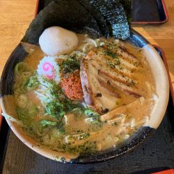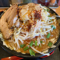 仙台味噌を使用した甘みのある味噌に菅野製麺所の太平縮れ面を合わせた味噌ラーメン✨トッピングはもやしメインに大判の豚バラ巻き煮焼豚で、スープは甘みのある仙台味噌にニンニクのパンチが効いたスープ🧄たっぷりの背脂は背徳感はあるものの味噌の甘さを更に引き立てます🫘人気の味噌二郎は甘み強めの美味しい二郎系の味噌でした🌈