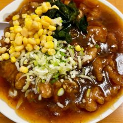 スープ自体は割とあっさり醤油のようですが、揚げたお肉に甘辛の餡がたっぷりかかっていまし... 続きを見る