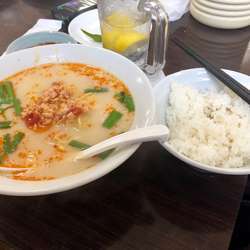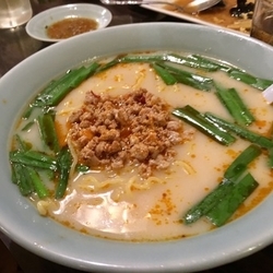 台湾ラーメンですが辛さは強くなく、万人受けする醤油スープになっています。刀削麺なので麺は平打ちできしめんのようですが、厚さがありコシがあり食べごたえがあります。具材には挽肉、モヤシ、ニラなどが入り、ラーメンによく合っていました。