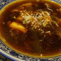 ヒタヒタで少し甘めの醤油味スープにピリッとする麻婆豆腐。