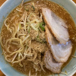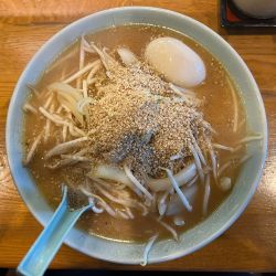 あっさり味噌スープの中に旨味を感じる、コクは素晴らしい。中太ストレート麺やや縮れ弾力のあるコシがある麺。大量もやしシャキシャキ感がたまらなく美味しい。胡麻が大量かかって中々良い。