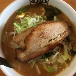 このお店のスープは、サッポロ一番『みそラーメン』のリアル店舗です。麺は、低加水のやや太目の縮れ麺で良くスープを拾いました。具はチャーシュー(脂身がホロホロ)、モヤシ、ワカメ、ねぎの一般的な具材です。高い評価はつけませんが、味が安定してそうです。