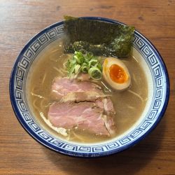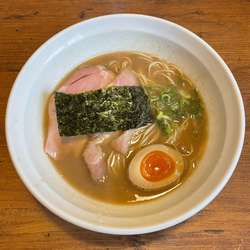 とろみついた濃厚なスープは口当たりが円やかでコクがあります。口にしている際の旨味や塩分濃度は申し分ないですが、後味は渋みのある魚介の味が支配的になっており、旨味の余韻が感じられないのが残念です。
