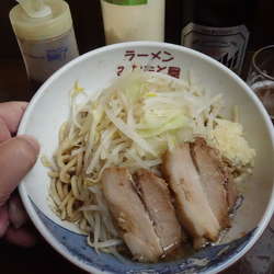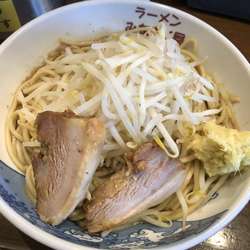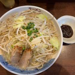スープは煮干し強めで塩味強めのショッパースープ。麺にインパクトあるので塩味強めは分かるが、少しエグ味が気になる💦
