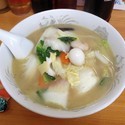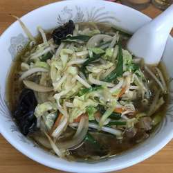 店は店主と御夫人、忙しい時用のヘルプっぽい若い女性の3人で切り盛り。調理は主に店主が担当し、御夫人は麺茹で以外は配膳と接客も担当。注文後、18分ほどで高台経由で着丼。やはり「もやしそば」が、餡かけですね~^^