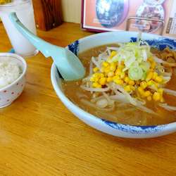 ラーメンは塩おすすめ?味っていうかにんにくが効いてうまい。もやしとコーン多めだけどボリュームもあって満足。いや、この値段でこのラーメンならかな... 続きを見る