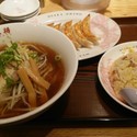 五目チャーハン+野菜炒めセット(五目チャーハン、野菜炒め、スープ、唐揚げ二個)、950円にて。テーブル... 続きを見る