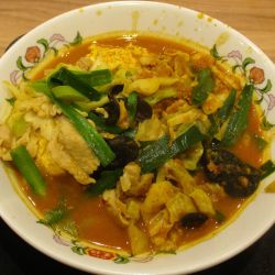 ひき肉、白菜、ニラ、もやし、キクラゲ、玉ねぎ、ネギ、すり生姜がトッピングキクラゲのコリコリがアクセントですねえ。