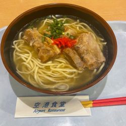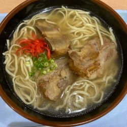 ソーキそばは薄味ですが出汁が効いててスルスルと食べられます
