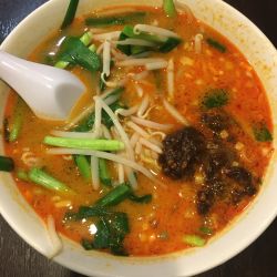 具は、もやし・にら・ネギ・挽肉。ペースト状の味噌のようなものも乗る。挽肉が少ないのは寂しいかな。