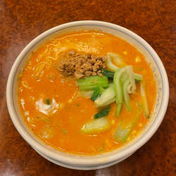 タンタン麺セット(1078円)を。スープは、ライトだが刺さるような辛味が特徴的。麺は、シャキッとしたストレート細麺。具は、ネギ・チンゲンサイ・挽肉。ぶつ切りのチンゲンサイがどっさりと入ります。セットなので、半チャーハン・焼売・杏仁豆腐が付く。チャーハンも、美味しかったです。