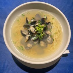 スープは、油分全くなく、しじみと塩味をしっかりと効かせたバランス。