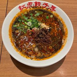 スープは、適度な辛さで、甘味と酸味のバランス良く好きなタイプ。担々麺は圧倒的に白胡麻派なのだが、こちらの黒胡麻担々麺は好み。