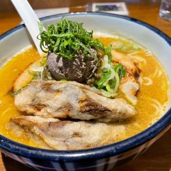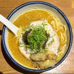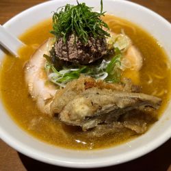 煮干しの出汁が前面にでた、これだけでもおいしいスープに、味噌足してなんとも味わい深いスープに。さらにそれだけでは無く、鶏白レバーを溶かして食べることで、さらに3重に味が重なり、とどめに大葉を溶かすとまた味が変わり、何重にも味が重なり合う大変おいしいスープでした。