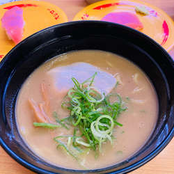 バランスがとれながらも味噌のインパクトが強い味で、私の好みの味です。麺はコシがあり、スープとよくあっています。チャーシューはしっとりしていて食べやすかったです。コーンが多めに入っていて、いいアクセントになってます。回転寿司屋の中でのラーメンでは美味しいと感じました。