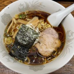 さておき表題をオーダー、暫しで着丼。ビジュアル的には黒に近いスープの色味に強いインパクトを受けます!丼からはほんのり煮干しが香ってきますね。
