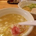 麺・中細い麺エッジなかなかしっかりしていて適度な弾力、さほど減点の要素ないように思えましたが残念な事に麺短すぎ、たべやすいがつけを食べている魅力半減です
