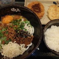 【注 文】カレーセット(ぶっかけ)(580円)うどん中に(100円)げそ天(150円)鶏天(140円)