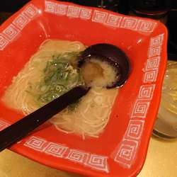海苔が厚くて存在感があるので、ライスを頼んでしまった。スープに浸してライスをくるり。美味