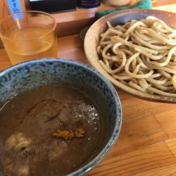| メニュー | メニューの写真を見る たぶん、東京で一番おいしいカレーつけ麺 並 850円 |
