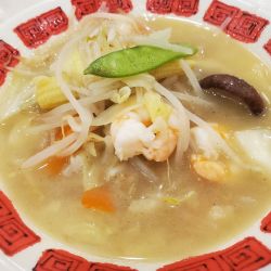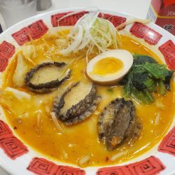 【注文】やわらか鮑の麻辣湯・中華麺(1429円)。これは「海鮮フェア」の期間限定商品。