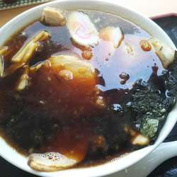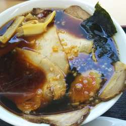 お肉屋さんの店舗内にあるが席数はカウンターとテーブルで約8人程度が座れる。隠れた名店と言っても良いくらいシンプルだがチャーシューがうまい
