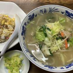 博多の味豚骨ラーメンと半チャーハンを注文。