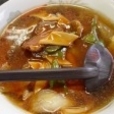 さっぱりとしたタンメン。食べ進めたら卓上のラー油を入れるか酢を入れるかは好みが別れるところ。