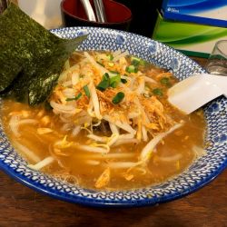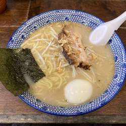 麺は、軽いうねりを有する白い中太麺。多加水のもの。