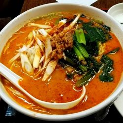 ゴマベースの甘みのあるベースに花椒のスパイスがしっかり効いた本格的な担々スープ。
