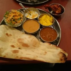 日替わりカレーを頼みましたがカレー2種類にナン食べ放題とコスパのいいランチになりました。