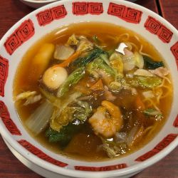 スープはダシがよく出たあっさりとした塩 麺はモチモチのストレート麺