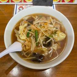 サンマー麺(700円)を。スープは、油分のない醤油ベース。トロミは弱いが、ニンニクのアタックが効く。麺は、もったりとした細麺。具は、もやし・にら・にんじん・キャベツ・玉ねぎ・キクラゲ・豚肉。この料金で具沢山なのは嬉しい。龍海閣は中華料理 龍海閣 片倉店以来の訪問でした。