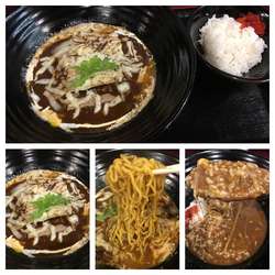 男女で切り盛り。券売機はなく口頭注文後会計。入って左右にカウンターが背中合わせのレイアウト。店の蘊蓄によると味噌豚骨をベースにカレーソースをトッピしたとある。
