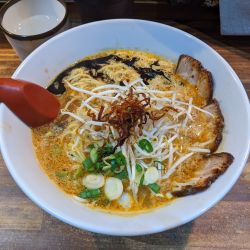 少しして写真の一杯が提供されました。スープはやや赤っぽい色合いをしております。ベース... 続きを見る