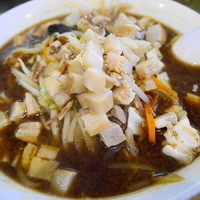 標題は醤油ラーメンに甘辛味の豚焼肉が載っています。