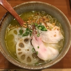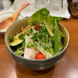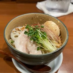 オクラ、レンコン、ズッキーニ、カイワレ、サニーレタスに薬味は茗荷とたっぷりの野菜を鶏スープのジュレでいただくまぜそば。ツルモチ中太麺に優しい味付けのジュレがよく絡みます。〆は温かいとりぽたスープ... 続きを見る