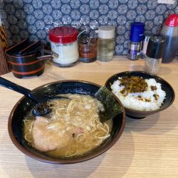 「豚骨しょうゆ」@柴田商店の写真家系かと思ったら、細麺豚骨しょうゆでした。 ライスおかわり自由。 好きになるのは、替え玉に刻みチャーシューと、すりおろし玉葱がのってます。 スープはくどくない、コクの深い旨み。 替え玉何杯でもいけそうな味です。 幾度か閉店告知ありましたが、日吉のラーメン競争には残る存在です。頑張ってください。