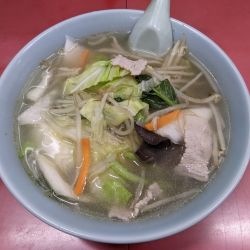 壁に貼ってあるメニューで「タンメン」を確認して、女将さんに口頭で注文します。