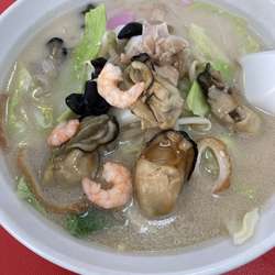豊中「浜」交差点直ぐの「ナガサキの鐘」の「牡蠣ちゃんぽん」、年始の墓参りの道中で。おせちに飽きた反動で鬼ウマイ。