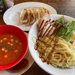 つけだれも冷やされたつけ麺。トマトを主体にコンソメのような味付け。