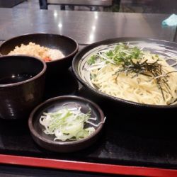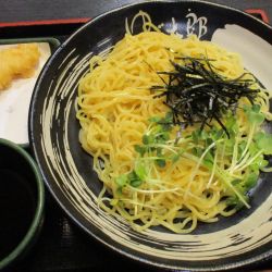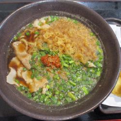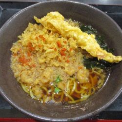 5分ほどで完成、カウンターで揚げ玉少々と、鬼おろしを少々投入して着席。